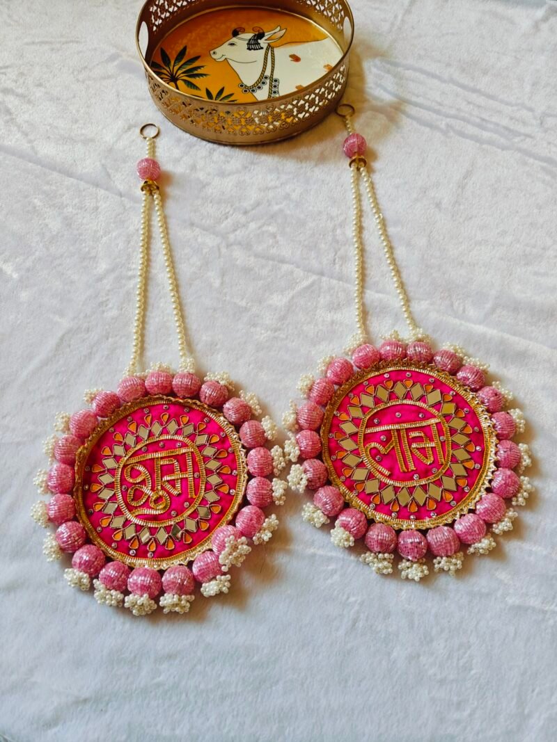 Tags: Auspicious symbols, Cultural wall hangings, Diwali decor, Diwali gifts, Ethnic Home Decor, Festive door hanging, Gotta Patti decor, Handcrafted India, Handmade decor, Home entrance decor, Indian wedding decor, Pooja room decor, Shubh Labh set, Subh Labh, Traditional Indian decor